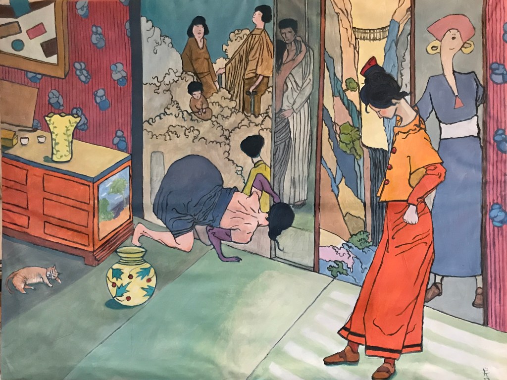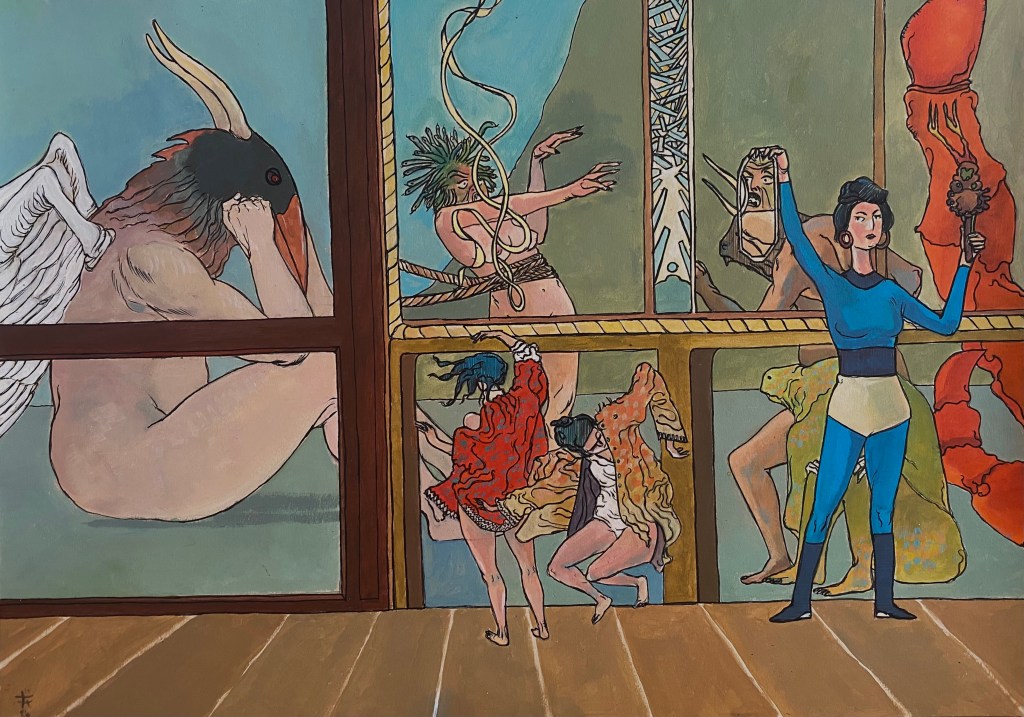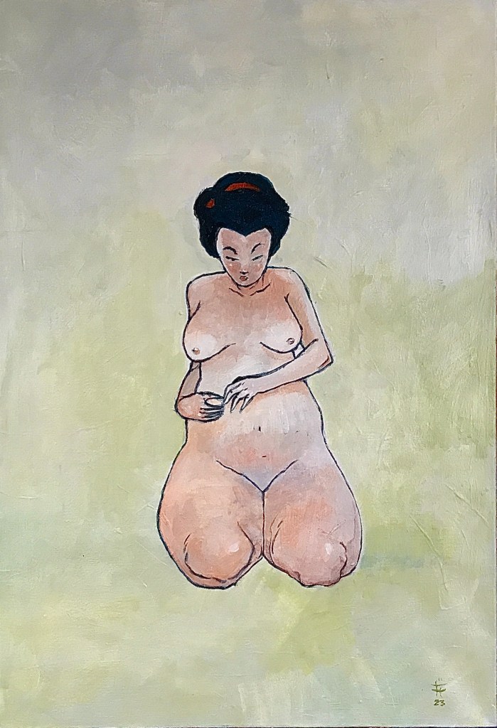 La dame à l’épée (feutre et acrylique sur toile, 65x50cm, 2025)Rencontre avec la tortue (feutre et acrylique sur papier, 59x42cm, 2024)Il circo mitologico (feutre et acrylique sur papier, 59x42cm, 2024)La dame sois la mer (feutre et acrylique sur papier, 59x42cm, 2024)Geisha enceinte (acrylique sur toile, 81×65 cm, 2023)Danseuses (acrylique sur toile, 89×116, 2023)La danse (acrylique sur toile, 73×100 cm, 2023)Curiosité ( (acrylique sur toile, 96×116 cm, 2023)Sur l’herbe ( (acrylique sur toile, 100×73 cm, 2023)La boule de cristal (huile sur toile, 61×50 cm, 2022)La fête (acrylique sur toile, 100×73 cm, 2023)Assomption (acrylique sur toile, 73×50 cm, 2023)La chasse (acrylique sur toile, 100×81 cm, 2023)Reine et guerrières (acrylique sur toile, 92×65 cm, 2023)Geisha assoupie (acrylique sur toile, 81×65 cm, 2023)You’re under arrest (acrylique sur toile, 92×65 cm, 2023)Geisha timide (acrylique sur toile, 73×50 cm, 2023)Pudeur (acrylique sur toile, 100×81 cm, 2023)Peintures récentes