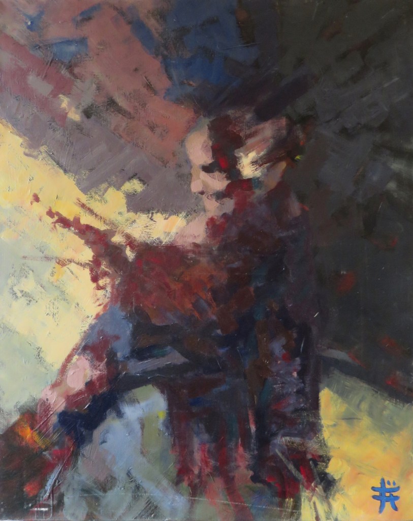 La dame à l’épée (feutre et acrylique sur toile, 50x65cm, 2025)